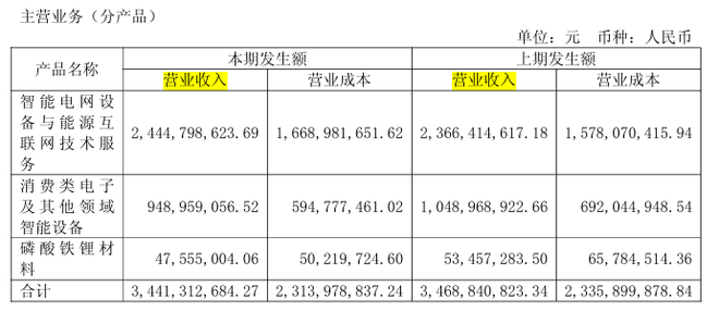 有关营业收入变动的原因,公司称,其中智能电网设备业务较上年同期增加0.82亿元;消费类电子及其他领域智能设备业务营业收入较上年同期减少1.00亿元,营收下滑主要是新能源汽车领域智能设备销售收入较上年同期有所下降。
