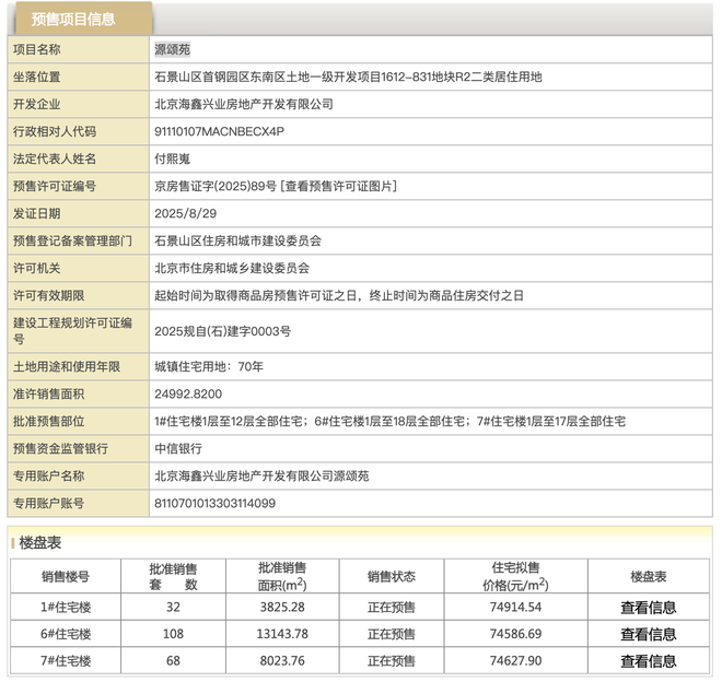北京进深 徐迪 8月29日,中海长安源境二期取证,备案名:源颂苑。