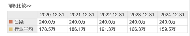 据瑞财社查阅,华东医药董事长、总经理吕梁现年51岁,硕士学历。其于2020年至2024年薪酬均为240万元。