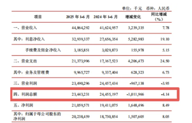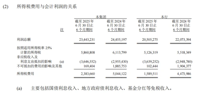 发现,该等变化主要在于江苏银行所得税费用有所减少。2025年上半年,江苏银行所得税费用为23.83亿元,同比上年同期的50.44亿元减少了26.61亿元。