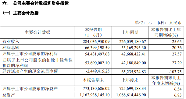最新业绩方面,8月26日晚间,泛亚微透还公布了2025年半年报,公司营业收入为2.84亿元,同比上升25.65%,主要系报告期内公司积极拓展市场,优化产品结构,持续推进进口替代,各类产品销量均有所增长提升所致;归母净利润为5443万元,同比上升27.57%;扣非归母净利润为5369万元,同比上升27.29%;经营现金流净额为-245万元,同比下降103.75%,主要系随着公司业务增长,购买原材料增加而回款较上年同期减少;同时由于员工增长,支付给职工的薪酬增加所致。