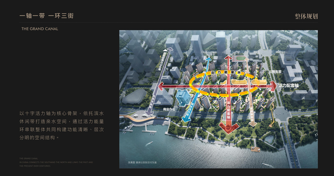 建筑单体按正南北排布,通过楼间视线通廊,让沿河第二排建筑也可共享运河景观资源。
