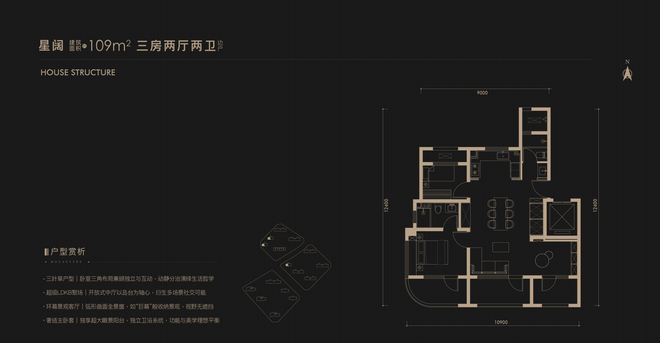 90㎡起步,主力为108㎡三居和120㎡四居,层高3米-3.1米之间;
