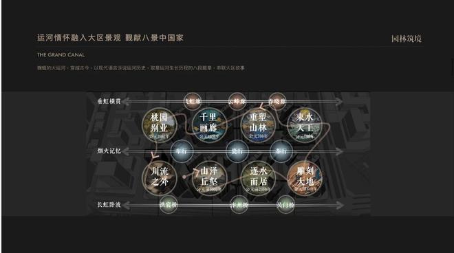 除运河景观外,每个地块还做了独立的园林景观,包括多功能用地,共八大主题。