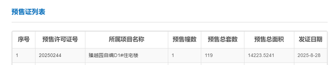 粤进深 严明会 8月28日,据广州市住建局,位于海珠西板块的越秀江湾潮起(备案名:臻越园)D1栋拿到预售证,批准预售房源119套,预售总建筑面积14223.5241㎡,由广州新秀房地产开发有限公司开发。